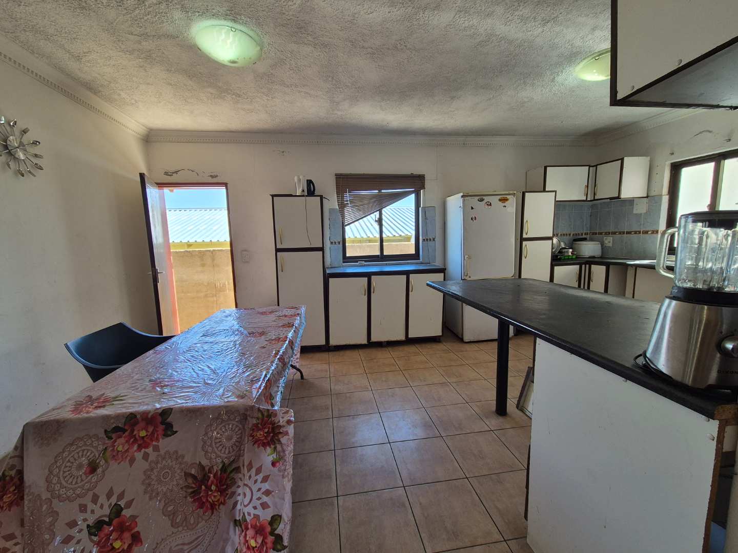 - Open-plan dining and kitchen area.